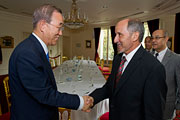 En una reunión de alto nivel sobre esa nación, celebrada en el marco del debate de la Asamblea General, Ban Ki-moon dio la bienvenida a Naciones Unidas a Mustafa Abdul Jalil y Mahmoud Jibril, presidente y primer ministro del Consejo Nacional de Transición.