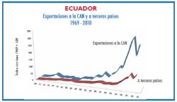 Este dinamismo comercial ha significado el incremento de las exportaciones del Ecuador a la CAN de 284 veces en 41 años. El pico más alto fue en el año 2009 que llegó a superar las 330 veces. Mientras que las exportaciones a terceros países ha tenido un incremento de 104 veces, en el mismo periodo de tiempo.