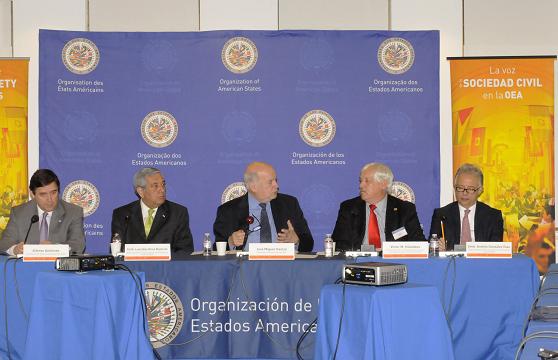 Al dar la bienvenida a los asistentes del foro, el Secretario General Insulza recordó que los intercambios con la sociedad civil durante la reunión anual cumbre de la OEA, se originaron hace ya nueve años en Santiago de Chile. “Esta es la única organización a nivel regional, y me atrevería a decir a nivel mundial, que busca un espacio permanente para que los Estados Miembros, la Secretaría General y la sociedad civil dialoguen sobre el tema central de las asambleas”, afirmó, y consideró que “hoy se hace difícil pensar en un proceso de negociación de la Asamblea que no prevea de alguna manera las opiniones de los ciudadanos, los movimientos sociales, y en general de lo que hemos llamado actores sociales”.