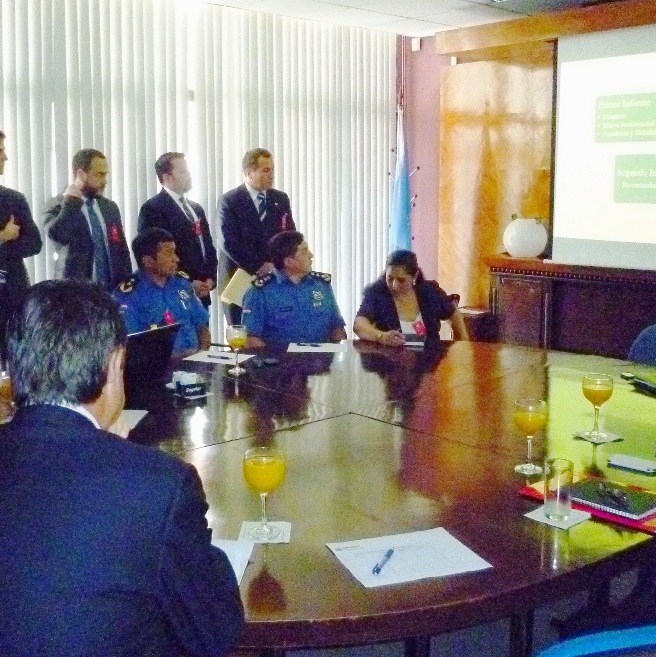Del encuentro participaron el Ministro del Interior, Francisco José De Vargas, altos mandos policiales, representantes judiciales, de la Secretaría Anticorrupción (SENAC) y el anfitrión José Manuel Martínez, asesor senior de la UNODC.