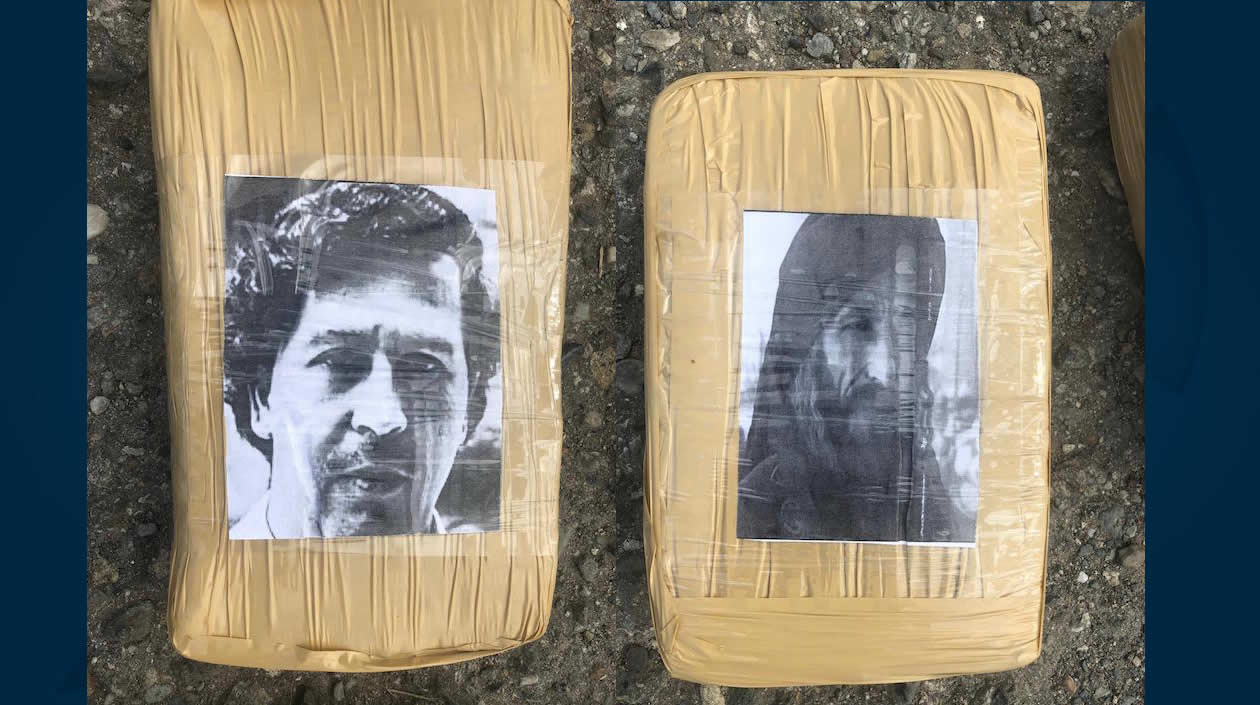 El coronel Fabio Rojas, comandante de la policía del Cauca, dijo que los narcotraficantes utilizaron los rostros de Escobar y bin Laden –ambos fallecidos– “para garantizar el producto enviado”.
