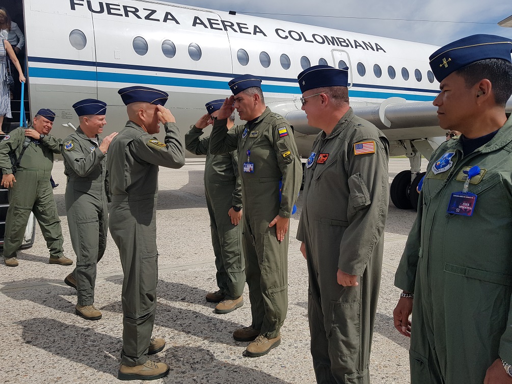 Tripulaciones de la Fuerza Aérea de Colombia dieron la bienvenida a sus homólogos de la Guardia Nacional de Carolina del Sur, en la Base Aérea de Palanquero, Puerto Salgar, Colombia. (Foto: Fuerza Aérea de Colombia).