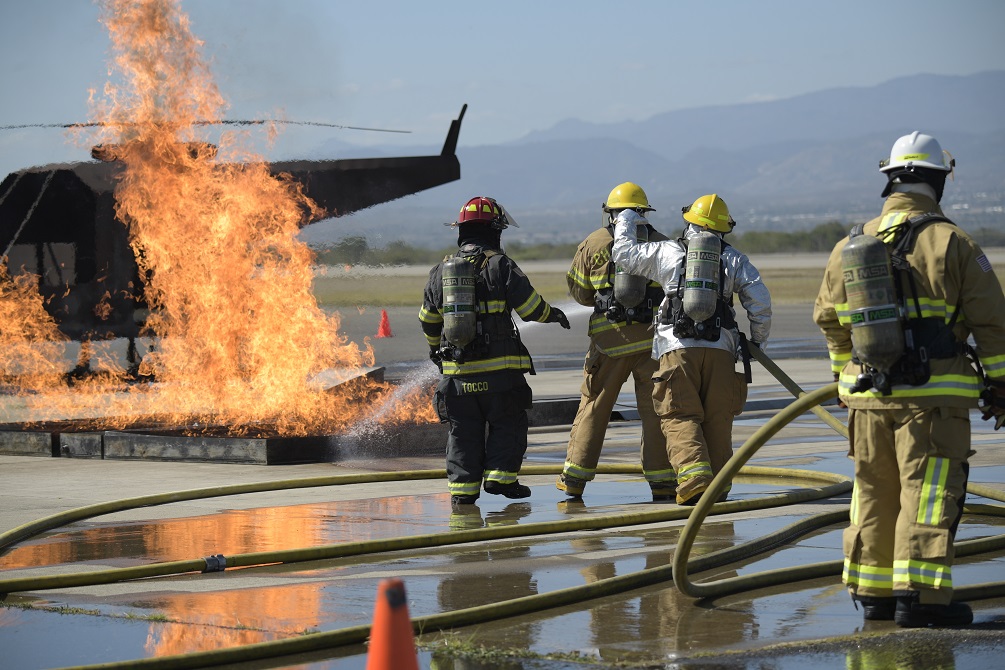 Durante la semana de entrenamiento, los militares aprendieron técnicas de seguridad y el manejo adecuado del equipo personal, de incendios estructurales e incendios en aeronaves. Además de familiarizarse con el equipamiento, aprendieron técnicas de primeros auxilios.