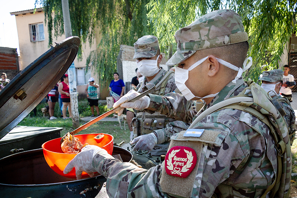 “Tenemos la totalidad de la capacidad de las Fuerzas Armadas y sus 90 000 hombres destinados a participar, de diferentes maneras, en el combate contra la pandemia de coronavirus”, dijo a la prensa el ministro de la Defensa de Argentina Agustín Rossi.