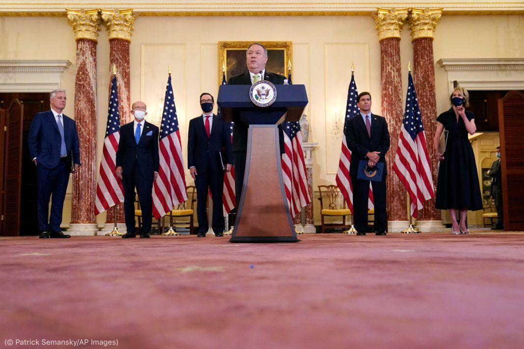 El secretario de Estado de Estados Unidos Michael R. Pompeo dijo en una conferencia de prensa el 21 de septiembre que el fallido acuerdo nuclear de 2015 con Irán le dio a este país una vía para obtener un arma nuclear y le permitió al régimen acceder a miles de millones de dólares para apoyar las guerras por medio de otros en Oriente Medio.