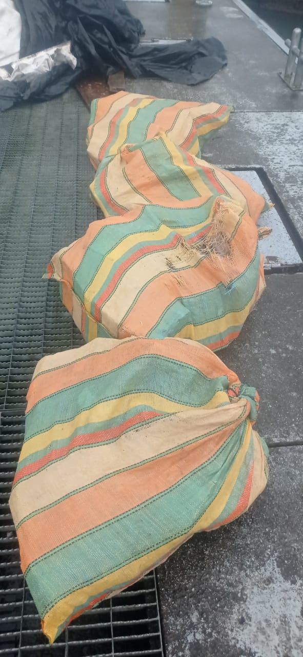 Así mismo, guiados por Inteligencia Naval, en coordinación con la Policía Nacional y la SIJIN, en el Sector de Limones, en Bahía interna de Buenaventura, una Unidad de Reacción Rápida de Guardacostas de Buenaventura, que adelantaba operaciones de control del mar sobre este sector detectó otra embarcación tripulada por tres sujetos colombianos. Al momento de la verificación, la tripulación halló cuatro bultos con 134 paquetes rectangulares.