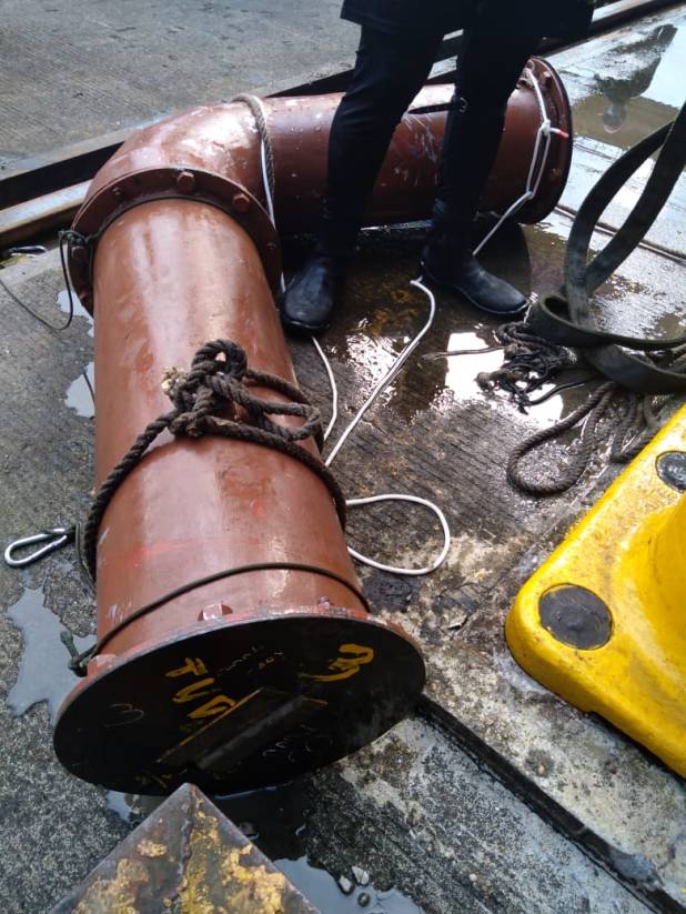 Durante la verificación que se extendió durante tres horas, los tripulantes localizaron un artefacto de forma cilíndrica de 2 metros de largo aproximadamente, en el interior de la caja de mar ubicada en el costado derecho del buque, el cual fue extraído y transportado hasta el muelle de la Estación de Guardacostas de Buenaventura para su verificación.