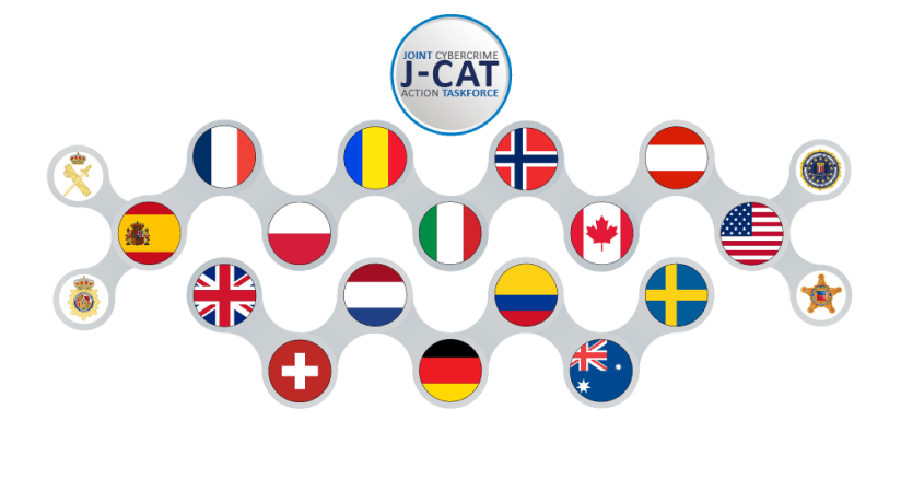 El Grupo de Acción Conjunta contra la Ciberdelincuencia (J-CAT) de Europol es un equipo operativo permanente formado por funcionarios de enlace cibernético de diferentes países que trabajan desde la misma oficina en investigaciones de ciberdelincuencia de alto nivel.
