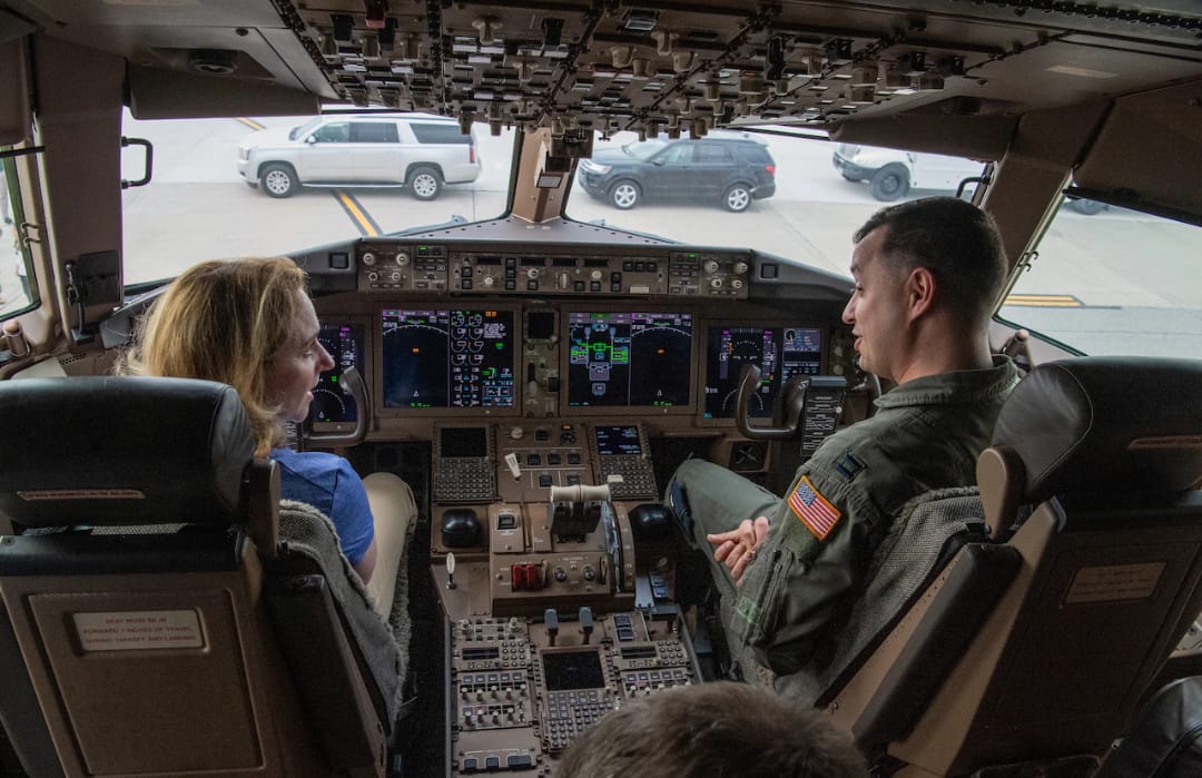 En Pease, el subsecretario se reunió con tropas y recorrió el KC-46A Pegasus, un avión cisterna polivalente de cuerpo ancho, del año 2019, que puede avastecer todos los aviones militares estadounidenses, aliados y de la coalición que están en línea con los procedimientos internacionales aéreo. El KC-46, utilizado por la Fuerza Aérea, también puede transportar pasajeros, carga y pacientes, según Boeing.