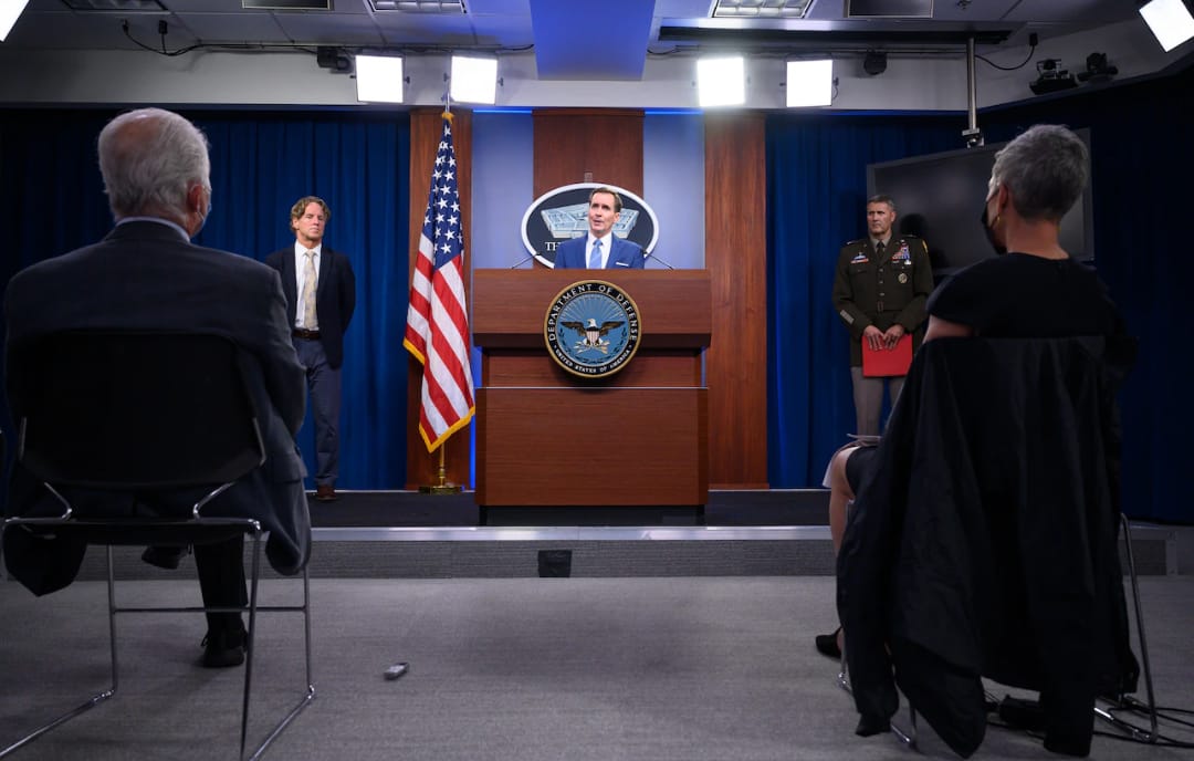 Transcripción relacionada, en idioma inglés: El secretario de prensa del Pentágono, John F. Kirby, realiza una conferencia de prensa.