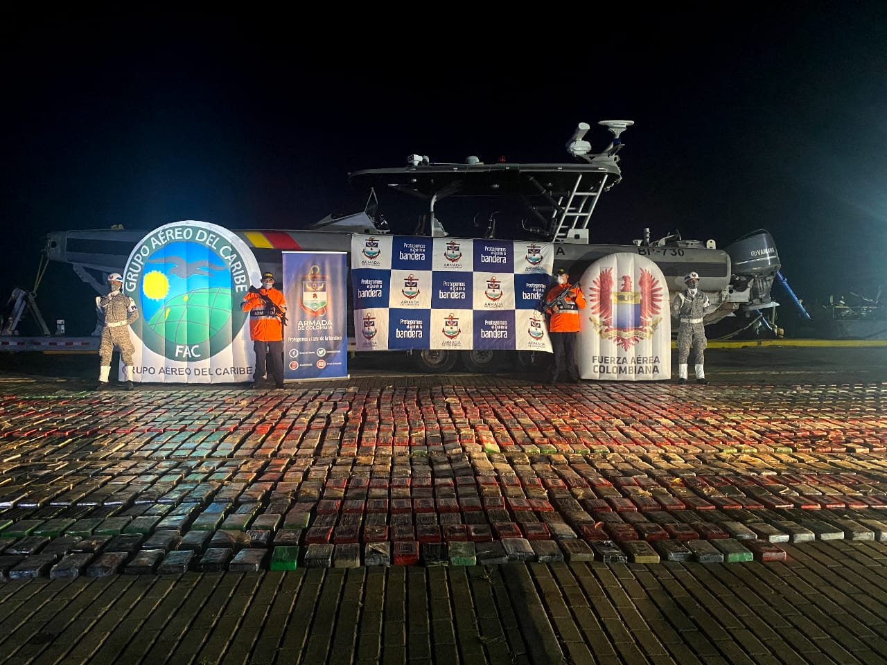 Oipol Operativa en Colombia / Comando Armada de Colombia, Comando Específico de San Andrés y Providencia, 11 de septiembre de 2021/ Edición Oipol – En las últimas horas, en una operación conjunta y combinada entre unidades militares de la Armada de Colombia, la Fuerza Aérea Colombiana, Estados Unidos y Panamá; se logró la incautación de 2.407 kilogramos de clorhidrato de cocaína que eran transportados en el área general del Caribe a 160 millas náuticas de la Isla de San Andrés, a bordo de una motonave tipo “Go Fast” la cual tenía como destino Centroamérica.