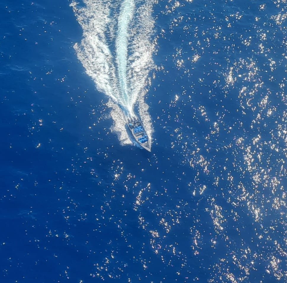 Ya en el mar la Fragata Misilera ARC “Antioquia” y la Patrullera Oceánica ARC “20 de julio” apoyaron la plena localización del contacto y desplegaron una Unidad de Reacción Rápida de Guardacostas. Los cinco sujetos, entre ellos cuatro colombianos y un extranjero, que tripulaban la lancha “Go Fast” al notar la presencia de las autoridades y sentirse atrapados, arrojaron el alijo al mar. La lancha fue interceptada a 160 millas náuticas de las costas de San Andrés.