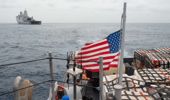 El buque Arlington (LPD 24) coordinó esfuerzos con otros componentes del Comando Sur de los Estados Unidos y los barcos de la Guardia Costera, además de los socios de Países Bajos, Francia y el Reino Unido.