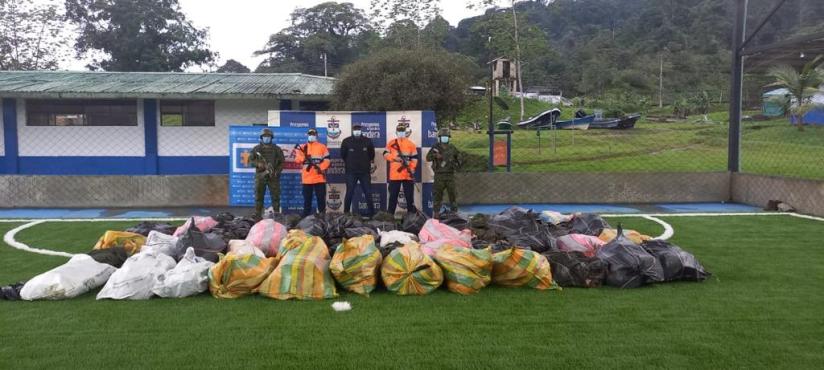 En un segundo despliegue operacional desarrollado en cercanías a la frontera con Panamá, en el sector de Isla Morros, área general de Punta Ardita, municipio de Juradó, las tropas lograron la ubicación de un depósito ilegal en donde fueron hallados 60 costales, con 1 961 kilogramos de clorhidrato de cocaína listos para ser transportados hacia mercados ilegales internacionales.