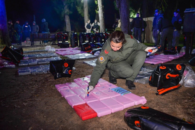 Las pericias efectuadas en la fría noche del lunes 13 de junio de 2022, sobre los 800 paquetes sellados con plásticos y envueltos en piñatas rosas. Arrojó resultado positivo para cocaína, alcanzó un peso total de 889 kilos 255 gramos.