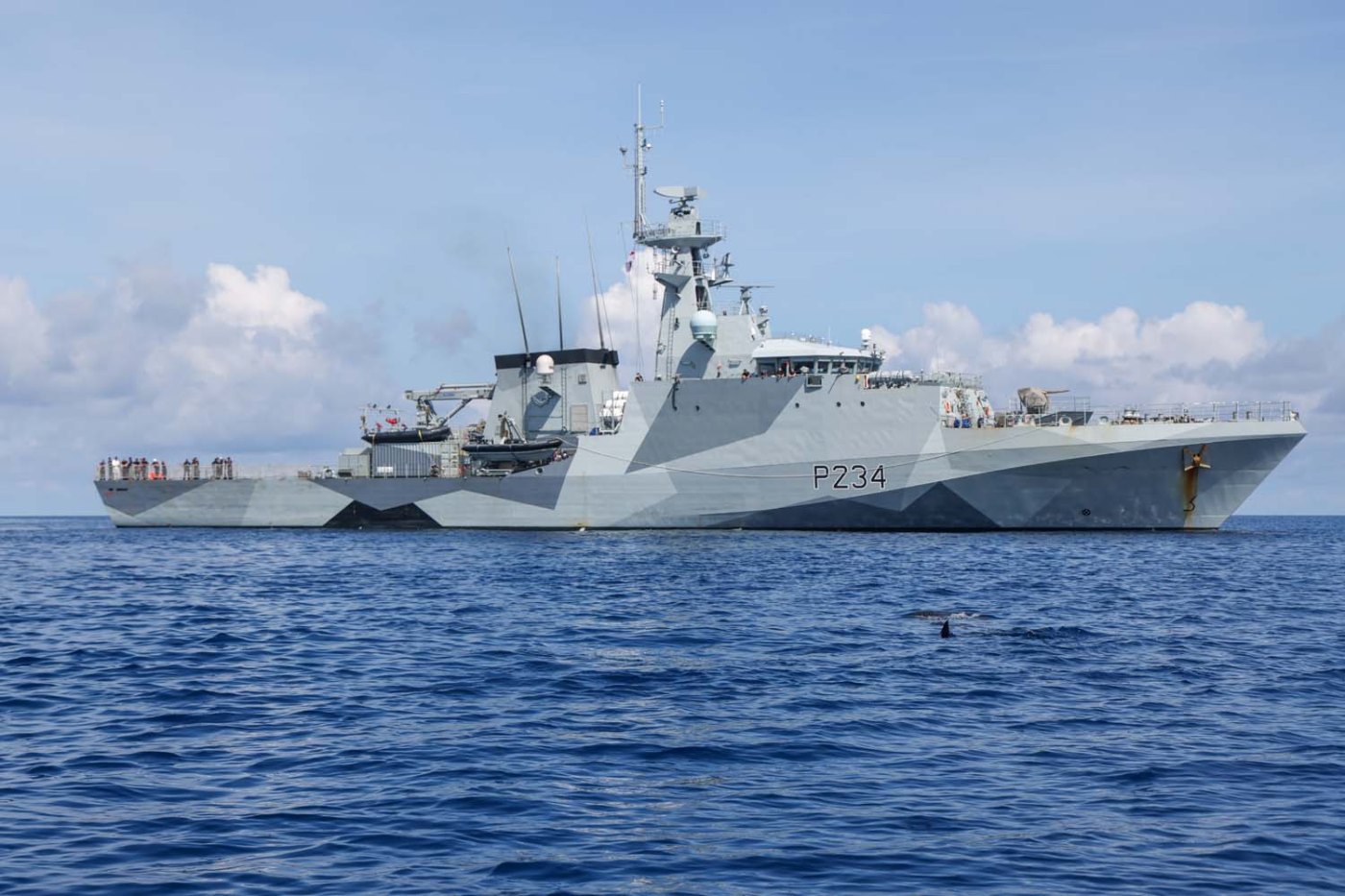 Los nuevos patrulleros HMS Tamar y Spey, que se encuentran en despliegues a largo plazo en el Indo-Pacífico, tienen sistemas de reducción catalítica para reducir las emisiones de óxido nitroso, mientras que el rompehielos HMS Protector apoya la investigación internacional sobre la vida silvestre, el cambio climático en la Antártida. Los patrulleros de la Royal Navy desplegados en todo el mundo regulan las poblaciones de peces.