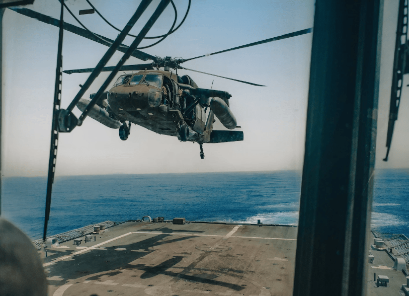Los pilotos y la tripulación del Ejército de los Estados Unidos, asignados al 1.er Batallón, 228.º Regimiento de Aviación (1-228), la Fuerza de Tarea Conjunta Bravo completaron las calificaciones de aterrizaje en cubierta con el buque de combate litoral variante Freedom USS Billings (LCS 15) frente a las costas de El Salvador, del 15 y 16 de julio de 2022.