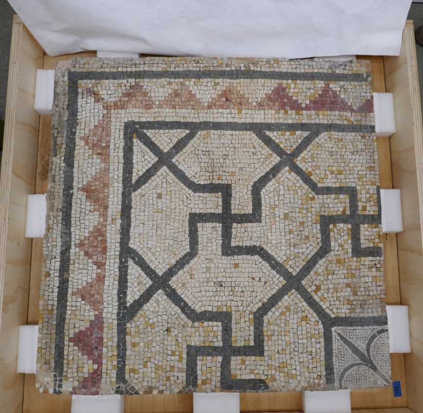 El siguiente desafío fue logístico. El mosaico tuvo que ser cuidadosamente embalado y enviado de tal manera que llegara intacto. Afortunadamente, la persona anónima que estaba en posesión de la obra accedió a pagar las cajas de envío especializadas.