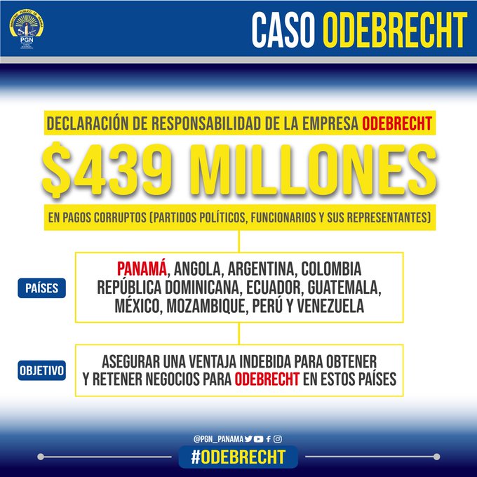 Sobornos por alrededor de 439 millones de dólares pagó la constructora, no sólo en Panamá sino en otros países como Colombia, México, Angola, Mozambique, Perú, Ecuador Venezuela, Argentina, República Dominicana.