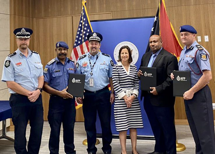 La Policía Federal de Australia (AFP) reconoció previamente la contribución de varios miembros de la Unidad de Delitos Transnacionales de la Policía Real de Papúa Nueva Guinea (RPNGC) y oficiales de la AFP involucrados en la operación en PNG en 2022.