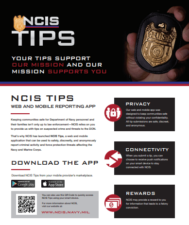 El Programa de Violencia Familiar y Sexual (F&SV) del NCIS se originó en 1996 como una Unidad de Violencia Doméstica (DVU) en Norfolk, Virginia (VA). Posteriormente, el programa evolucionó para abarcar investigaciones de abuso físico infantil, abuso sexual infantil y agresión sexual de adultos con agentes especiales dedicados de F&SV en las oficinas de campo del NCIS en todo el mundo. El objetivo principal del programa F&SV es prevenir y reducir la violencia sexual y doméstica dentro del Departamento de la Marina.