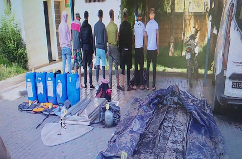 Ocho hombres marroquíes fueron detectados con un bote de goma y chalecos salvavidas preparándose para un cruce ilegal a España.
