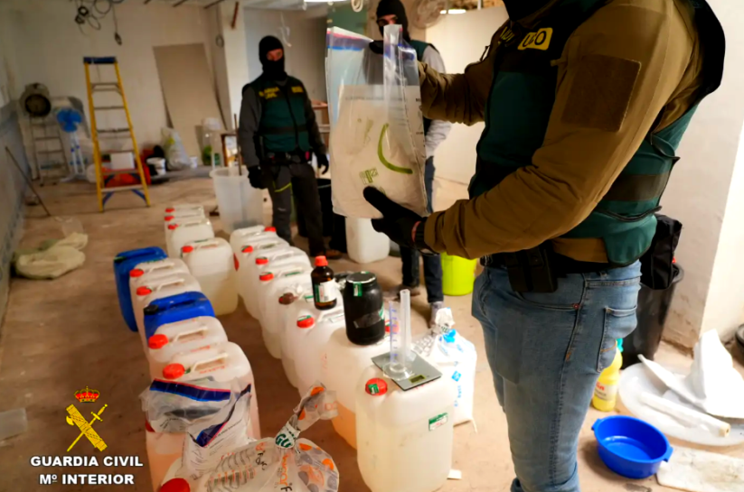 La policía desmantela un laboratorio de cocaína en España con una capacidad de producción que llegaría a los 100 kg mensuales.