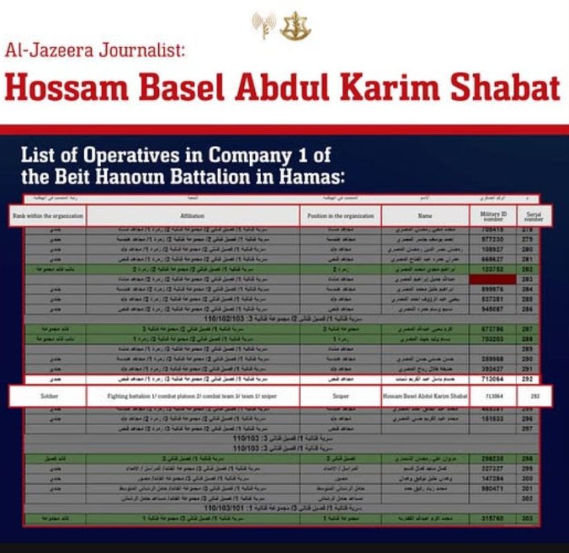 Esta táctica no terminó el 7 de octubre; durante los últimos 17 meses, se ha visto a Hamás explotar el poder de las plataformas mediáticas, convirtiendo la libertad de prensa en un escudo para sus agentes. El lunes 24 de marzo de 2025, las Fuerzas de Defensa de Israel (FDI) y la Agencia de Seguridad Israelí (ISA) eliminaron al terrorista Hossam Basel Abdul Karim Shabat. Este era un francotirador del Batallón Beit Hanoun de Hamás, no sólo portaba un fusil antitanque, sino también una credencial de prensa de Al-Jazeera, usándola como tapadera para su verdadera misión: atacar a soldados de las FDI y civiles israelíes.
