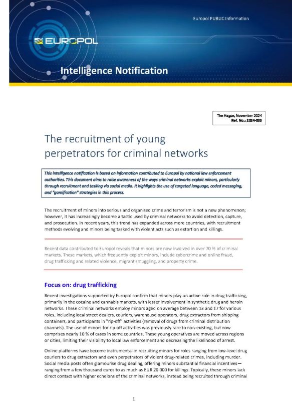 La explotación de jóvenes delincuentes para cometer actos delictivos se ha convertido en una táctica en rápida evolución utilizada por la delincuencia organizada. Esta tendencia se subrayó en la Evaluación de la Amenaza de la Delincuencia Grave y Organizada de la Unión Europea 2025 (EU-SOCTA), que identificó el uso deliberado de jóvenes como forma de evitar la detección y el procesamiento.