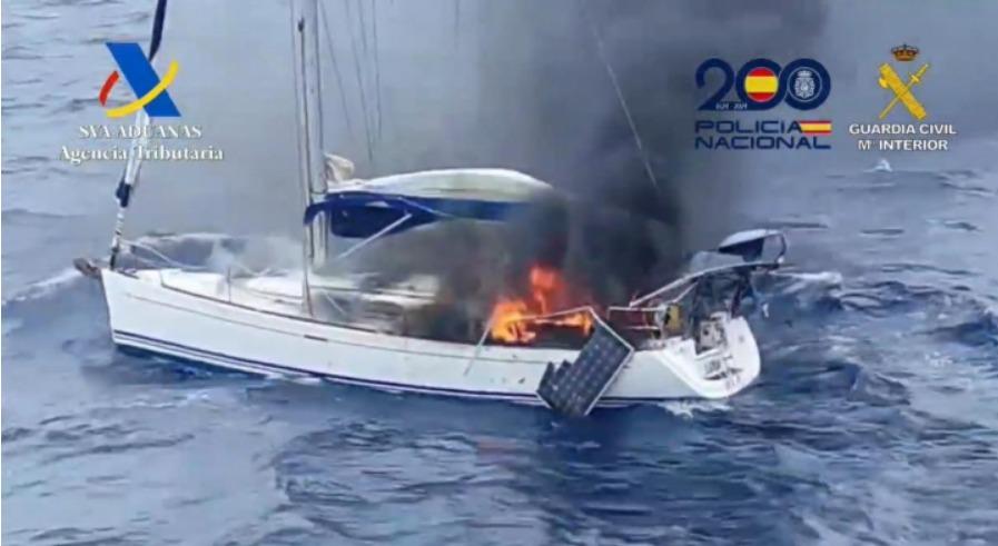 Los dos tripulantes del velero, de nacionalidad francesa y holandesa, han sido detenidos. Uno de ellos ha resultado gravemente herido en el incendio y ha sido trasladado en helicóptero por Salvamento Marítimo.