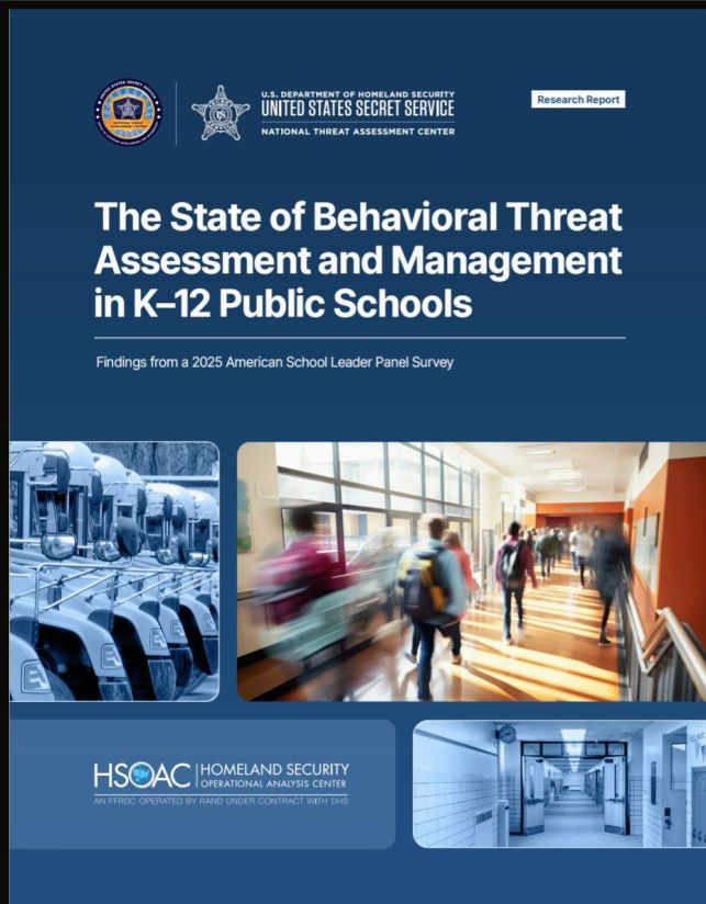 Oipol & Oijust Unidad OSINT Global Operación, cooperación, traducción y edición, noviembre 28 de 2025 | Servicio Secreto de los Estados Unidos, noviembre 12 de 2025.- El Centro Nacional de Evaluación de Amenazas (NTAC) del Servicio Secreto de los Estados Unidos ha publicado el informe «El estado de la evaluación y gestión de amenazas conductuales en las escuelas públicas de primaria y secundaria» , que ofrece información sin precedentes sobre cómo las escuelas están implementando la evaluación y gestión de amenazas conductuales (BTAM, por sus siglas en inglés) como método para prevenir la violencia escolar.