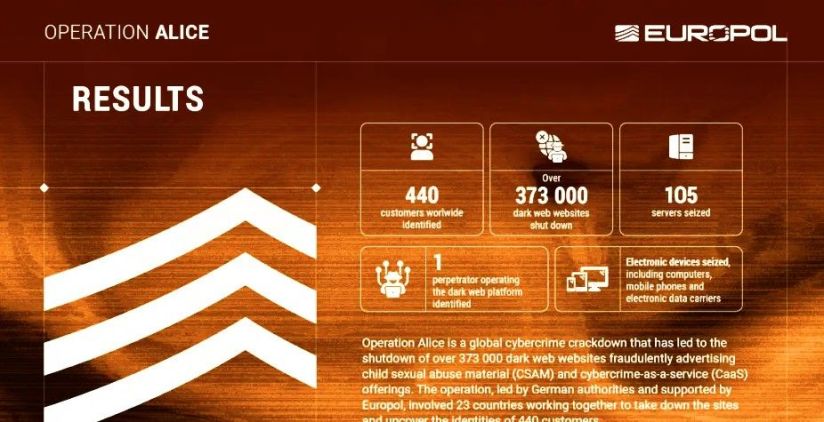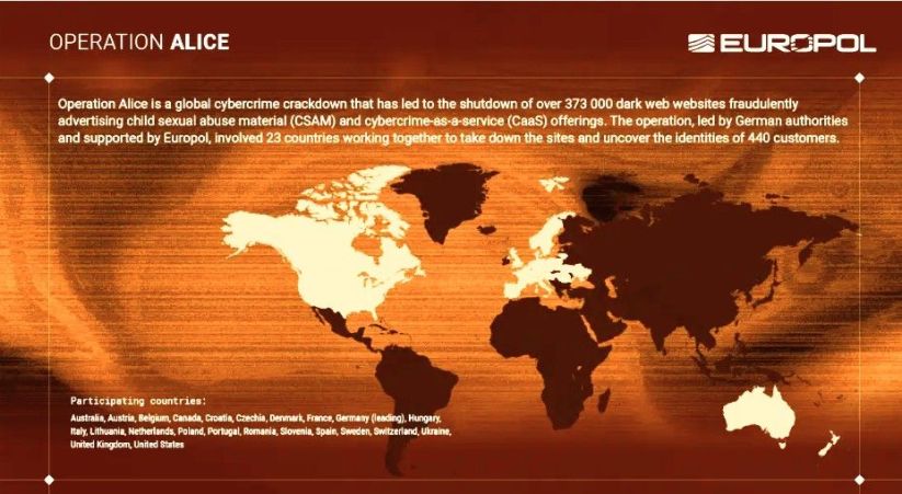 Oipol & Oijust Unidad OSINT Global Operación, cooperación, traducción y edición, abríl 03 de 2026 | Agencia Europea para la Cooperación Policial (Europol), informe y fotos, marzo 20 de 2026.- El 09 de marzo de 2026, se puso en marcha una operación global liderada por las autoridades alemanas y apoyada por Europol contra una de las mayores redes de plataformas fraudulentas en la dark web. La investigación, iniciada a mediados de 2021, se centró en la plataforma de la dark web «Alice with Violence CP». Durante la investigación, las autoridades descubrieron que el operador de la plataforma gestionaba más de 373.000 sitios web fraudulentos que anunciaban material de abuso sexual infantil (CSAM) y servicios de ciberdelincuencia (CaaS).